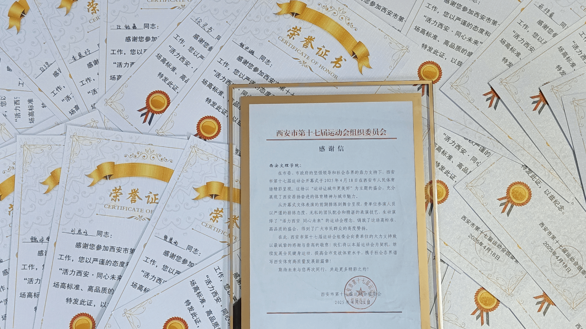 近日,西安市第十七届运动会组织委员会向我校发来感谢信,充分肯定我校师生在开幕式期间展现出的专业素养与奉献精神,并对学校组织工作给予高度评价。