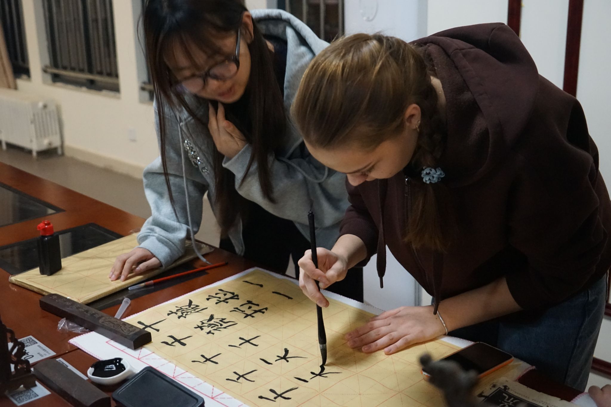 本次比赛吸引了众多书画爱好者的参与,参赛者们在现场用心创作,展现了同学们对艺术的独特理解和热爱。笔墨纸砚,四宝齐聚,书写出千年的文化积淀。