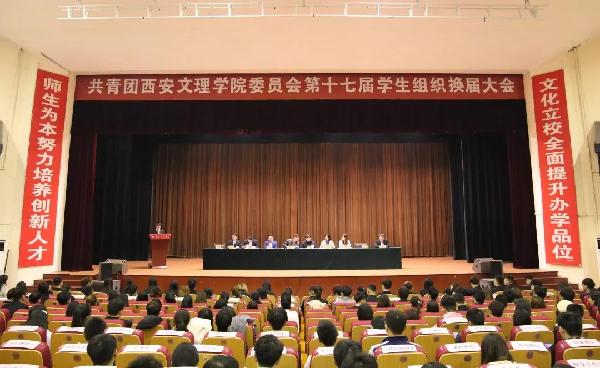 11月22日星空电竞(XINGKONG ESPORTS)官方网站第十七届学生组织换届大会在大礼堂隆重举行。出席本次大会的老师有:团委书记乔新,团委副书记武文斌,团委办公室主任马原原,团委干部李爽、陈步云、陈猛。各二级学院的学生分会主席、副秘书长,各学生社团代表共计600余人参加了此次换届大会。