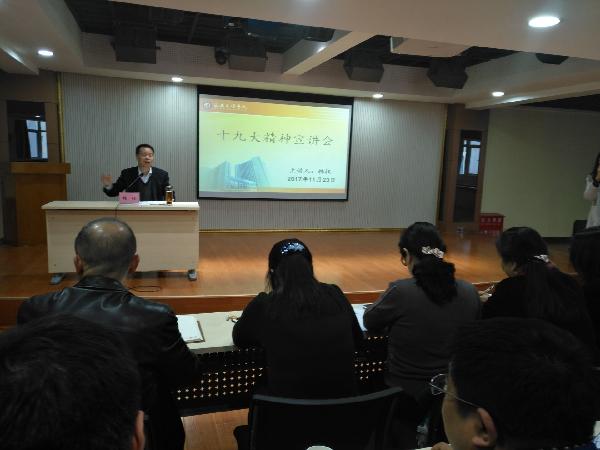 为了深入贯彻党的十九大精神,11月23日下午,副校长韩权在大学生活动中心为机关第三党总支全体党员和信工学院教工党员做了题为《不忘初心,牢记使命,深刻领会“新时代”的丰富内涵,将十九大精神学懂弄通做实》的十九大精神学习辅导报告。