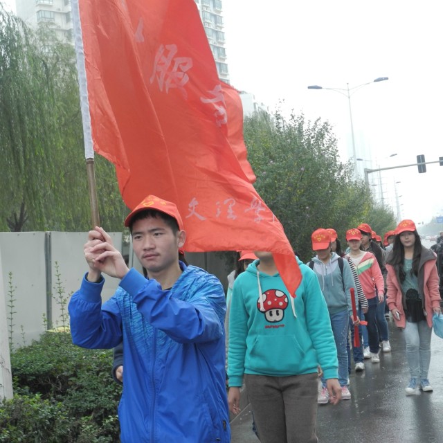 头戴小红帽,手提垃圾袋,志愿者们在石榴花广场前整装待发,按照原定计划出校南门,从科技六路到唐延南路,最后到达活动目的地——永阳公园。四十分钟的路程,志愿者们排着整齐的长队,清理了沿途道路上的垃圾,构成了周末道路上一道文明风景线,赢来了路人的阵阵赞许。