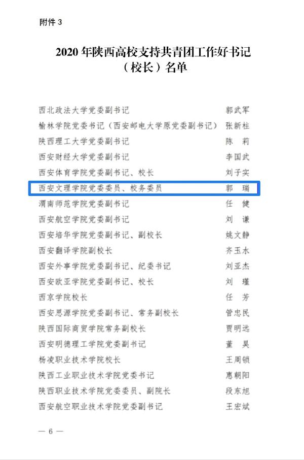 近日,陕西省高校共青团工作2020年考核评选结果揭晓,我校荣获“2020年陕西高校共青团工作优秀单位”。
