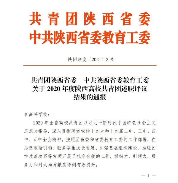 喜报 | 我校荣获“2020年陕西高校共青团工作优秀单位”